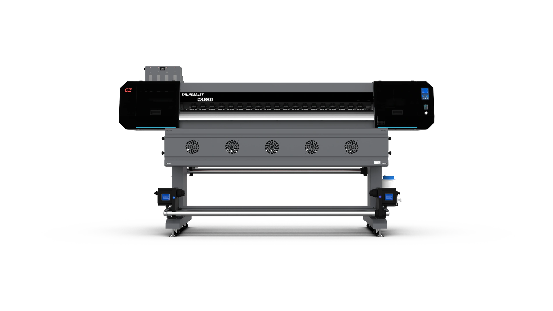 The SOBE ThunderJet AQ1602S is a 64-inch eco-solvent printer with dual Epson I3200 printheads, built for fast, reliable production of banners, vinyl, and signage with sharp detail and outdoor durability.